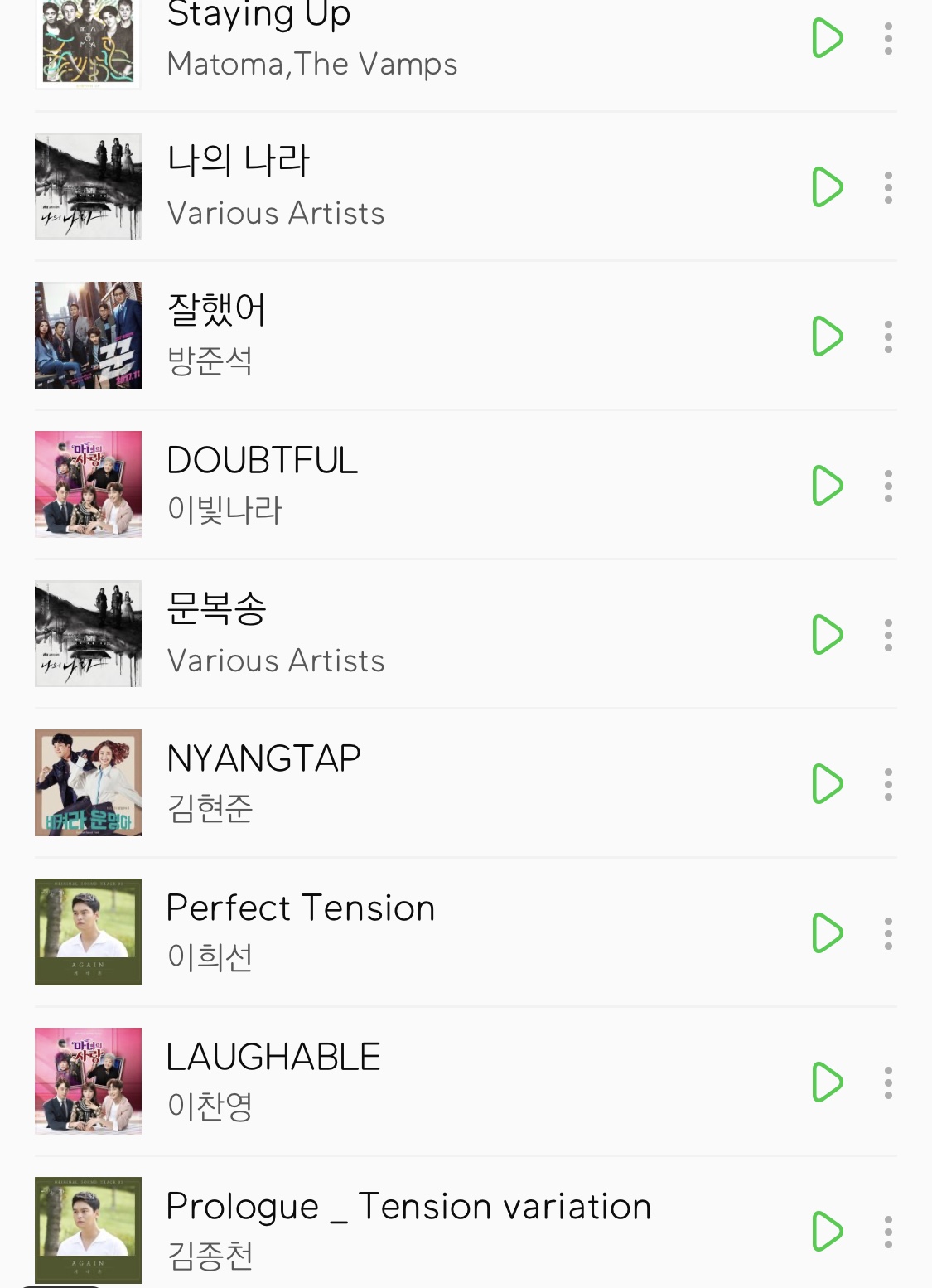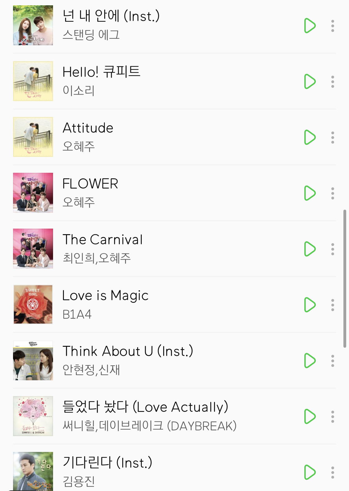여기에 나오지 않은 노래는 대사랑 맞물려서 노래 소리가 잘 들리지 않거나, 그냥 노래가 너무 잔잔하게 들어가서 안들리거나 해서 없는 경우가 있어요! 없는 노래는 저도 모른답니다! ㅎㅎㅎ