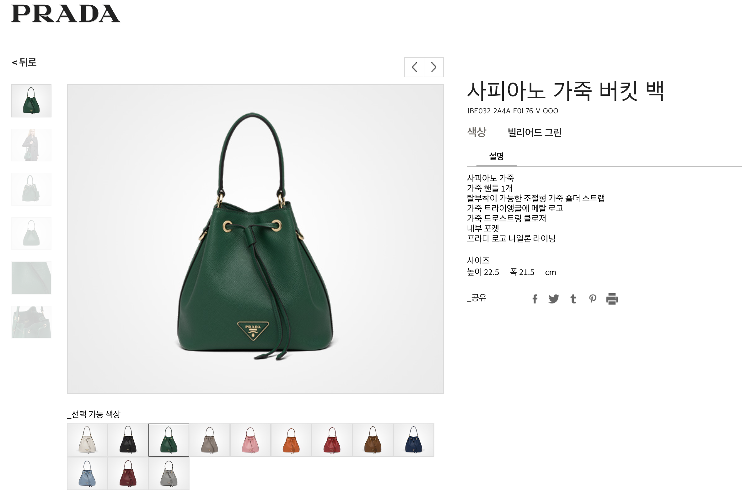 이게 새로나온 프라다 버킷백 라인인거 같은데 여기서 초록색 비슷한 색을 '빌리어드 그린' 이라고 명칭해놨길래 유추해 보았습니다.