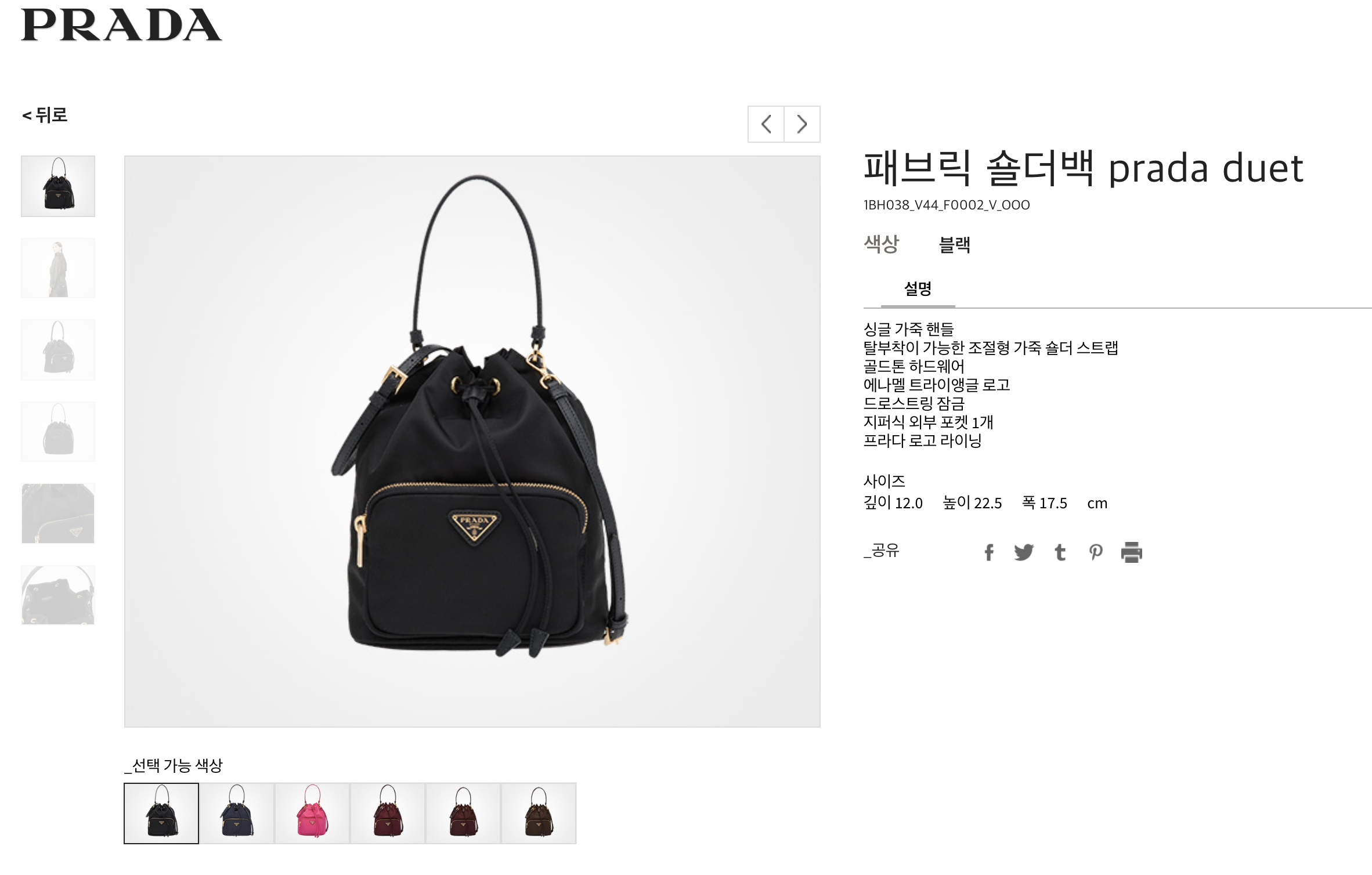 가죽재질도 있고, 프라다원단 재질도있고, 또 색상이 다양하게 있더라구요. 이윤지씨 가방은 프라다에서 말하는 '빌리어드 그린' 인거 같은데 지금 공식 홈페이지에서는 공개가 안되어있더라구요.