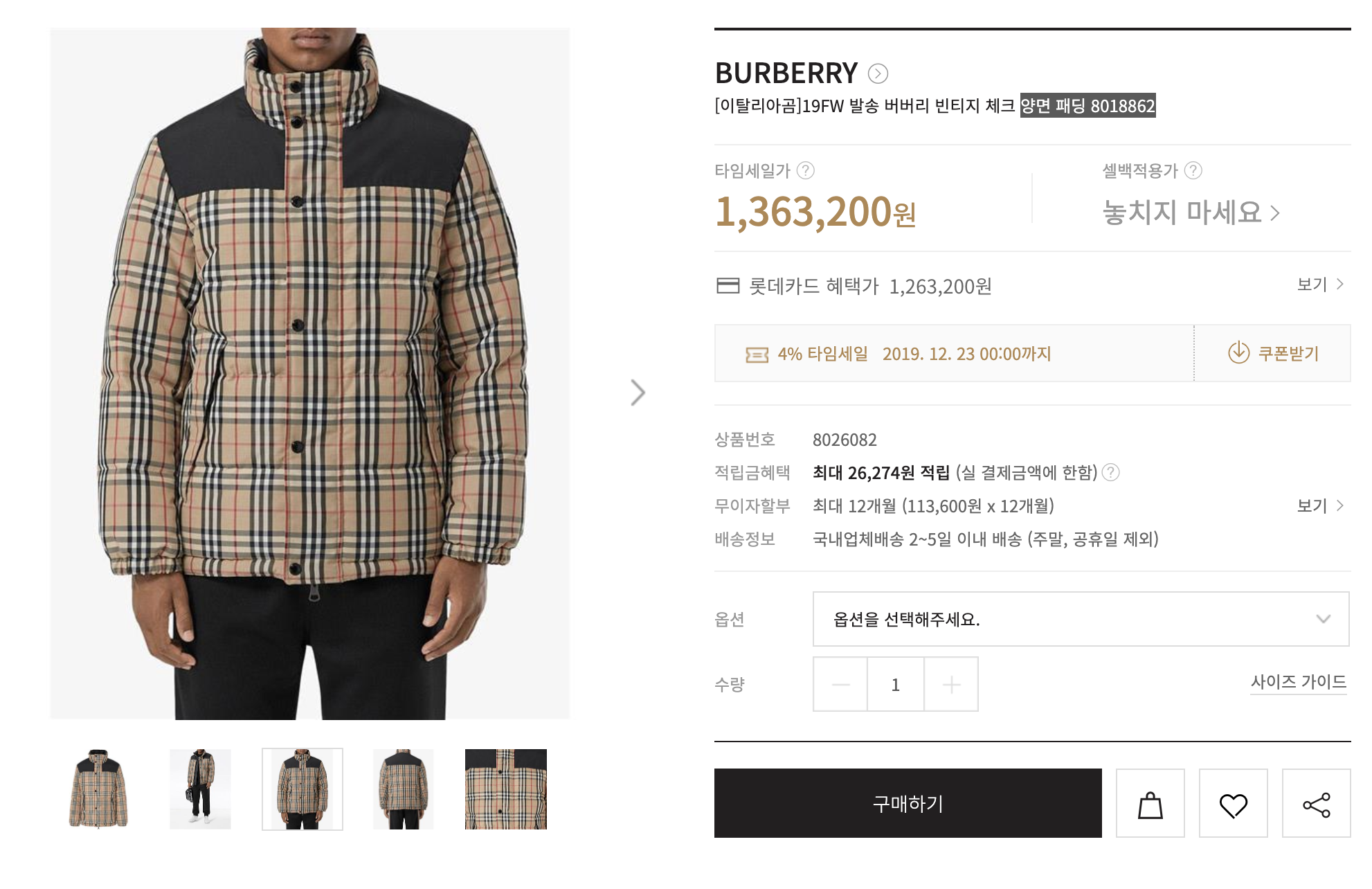 [이탈리아곰]19FW 발송 버버리 빈티지 체크 양면 패딩 8018862 - 리본즈 코리아(REEBONZ KOREA) - PGPS
