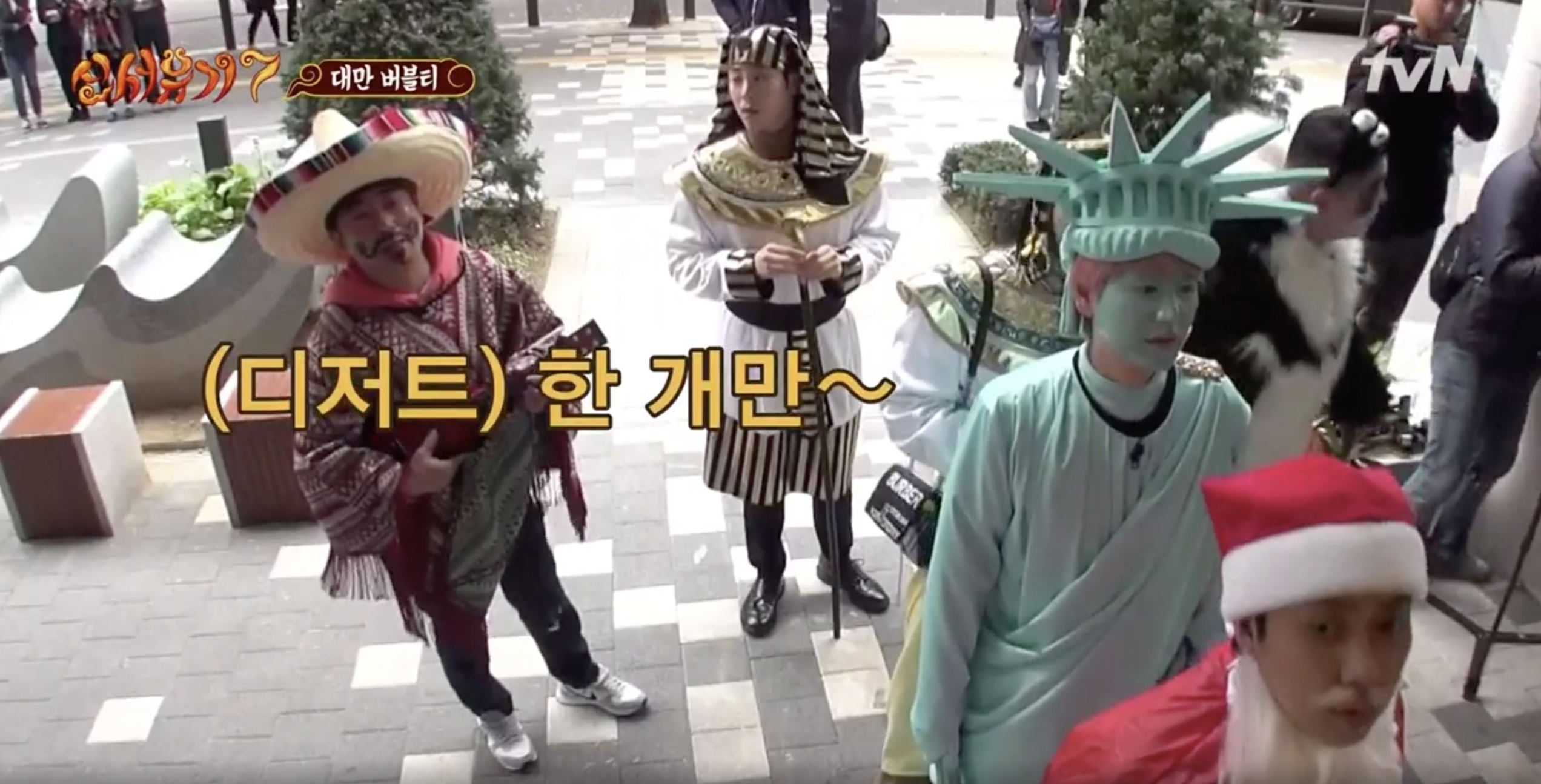 뭔가 처음에 분장은 이러지 않았는데 시간이 갈수록 엄청 웃긴 분장들이 나오잖아요.ㅋㅋㅋㅋㅋㅋㅋ이번엔 세계 각국의 사람들이 되었는데 조규현씨 분장이 진짜 요새 제일 웃긴거 같아요.